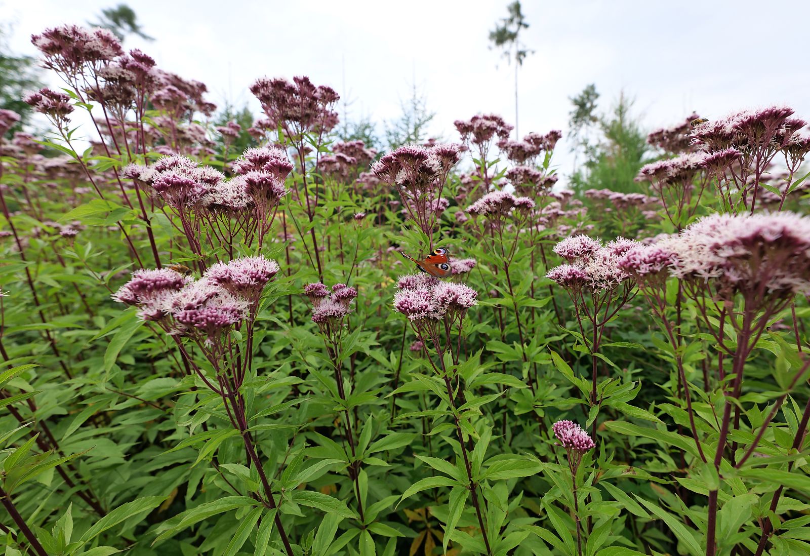 Der Gemeine Wasserdost erreicht an passenden Standorten eine Höhe von über einem Meter und ist mit seinen pupurnen, großen Blütendolden eine imposante Erscheinung. Durch starke Selbstaussaat kann er an Uferbereichen und auf lehmig-nährstoffreichen Böden größere Bestände bilden, sofern sein Bedürfnis nach Wasser erfüllt wird. Er verbreitet sich auf dieselbe Weise wie ein Löwenzahn, mit dem er botanisch verwandt ist: Nach seiner Blütezeit bildet er eine große "Pusteblume", die vom Winde verweht wird. Ist der Garten bereits eingewachsen, ist seine Ausbreitungsfreudigkeit aber kein Problem. Wer Schmetterlinge beobachten möchte, kann das hier aufgrund seiner späten Blütezeit wunderbar tun!