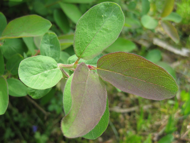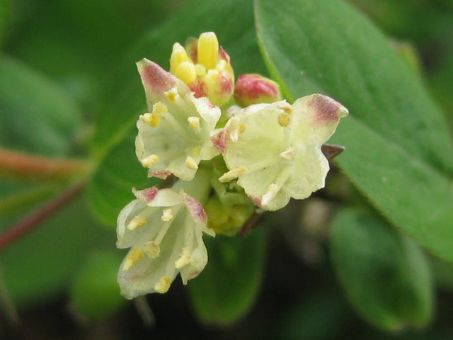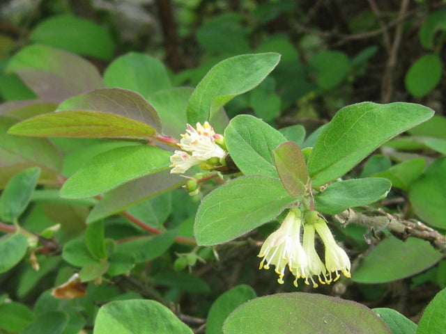 Leicht bläulich bereifte Blätter geben den robusten Strauch ein attraktives Erscheinungsbild. Im April erscheinen gelblich-weiße Blüten, die gerne von Hummeln besucht werden. Kennzeichnend für Lonicera caerulea ist ferner ein sehr früher Blattaustrieb.