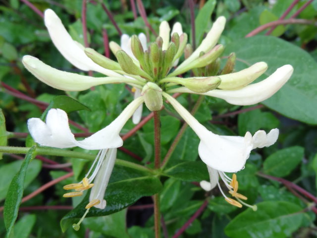Hellgrünes, ovales Laub, betörend duftende Blüten in gestielten 3-5 quirligen Ähren, innen weiß, außen gelb überlaufen und im Herbst roter Beerenschmuck sind kennzeichnend für dieses einheimische Gehölz. Das heimische Waldgeißblatt windet bis zu 4 Meter hoch und benötigt eine Kletterhilfe.