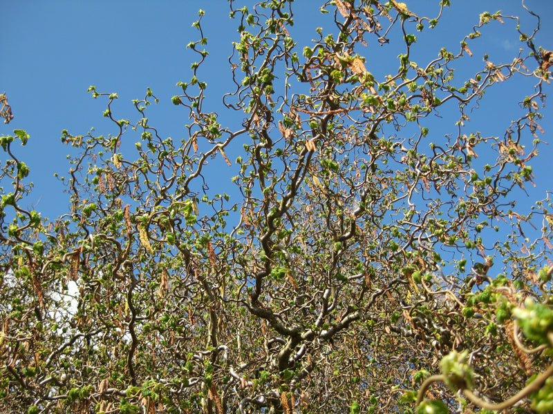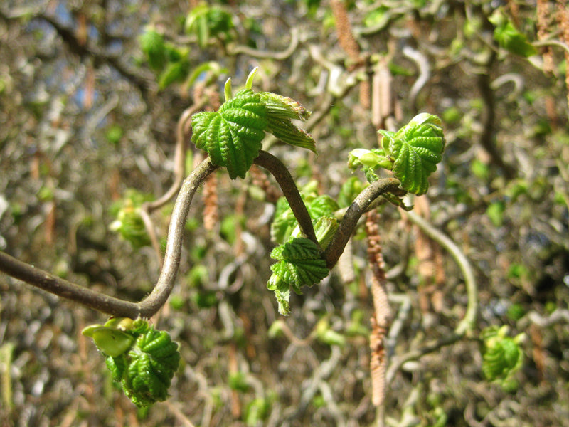 Die beliebte Korkenzieherhasel begeistert mit ihren bizarr verdrehten Zweigen. Auch die breit eiförmigen, mittelgrünen Laubblätter sind gekräuselt und verdreht. Schon ab Ende Februar trägt Corylus avellana 'Contorta' ihre langen männlichen Blütenkätzchen, die zusammen mit den noch unbelaubten Zweigen eine attraktive Zierde für den Garten sind. Zudem dienen Haselblüten als wertvolle, frühe Nahrungsquelle für Bienen. Im Gegensatz zu den männlichen sind die weiblichen Blüten rot, klein und unscheinbar.