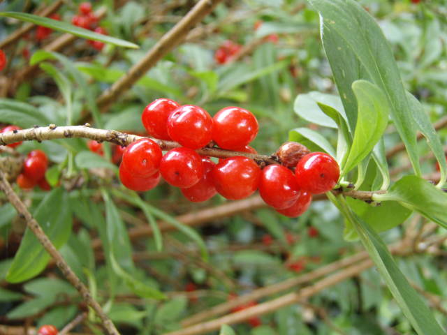 Daphne mezereum blüht im zeitigen Frühjahr mit rosa-roten Blüten. Im Herbst entwickeln sich rote Beeren, die sehr giftig sind. Die Blätter sind frischgrün, länglich und erscheinen nach der Blütezeit.