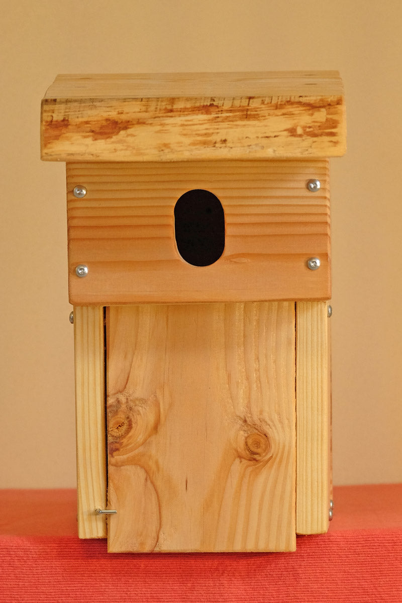 Diese hochwertige, handgefertigte Nisthilfe bringt jeden Vogel zum Staunen. Der Korpus ist aus 20mm Douglasienholz gefertigt und einseitig gehobelt. Das Dach aus Douglasienblockware 35mm und somit lange regendicht. Vorne verfügt die Nisthilfe über eine Reinigungsklappe mit innenseitiger Aufstiegshilfe.