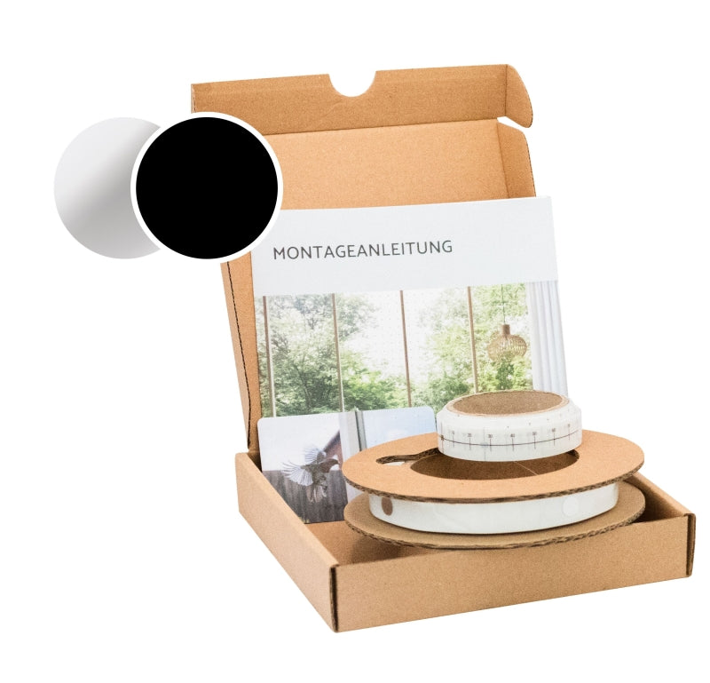 Deshalb bieten wir hier über die SEEN AG in Kooperation mit dem Wildtier-Schutzverein "Wildes Bayern e.V." praktische Sets zum Nachrüsten von Fensterscheiben mit reflektierenden Punkten an, die die Vögel warnen. Das Set für 2,5 Quadratmeter Glasfläche enthält eine Rolle mit klebendem Bändchen (hier: 25 m), über die sich die auf einer Seite metallisch schimmernden Punkte in gleichmäßigen Abständen außen auf der Scheibe anbringen lassen. Die Punkte sind 9 mm groß und werden in Abständen von 90 mm zueinander aufgebracht. Inklusive Maßband und Montageanleitung.